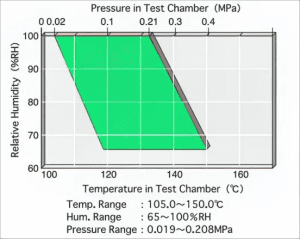 | Testing temperatures | 105.0~133.3℃/100%RH 110.0~140.0℃/85%RH 118.0~150.0℃/65%RH | |